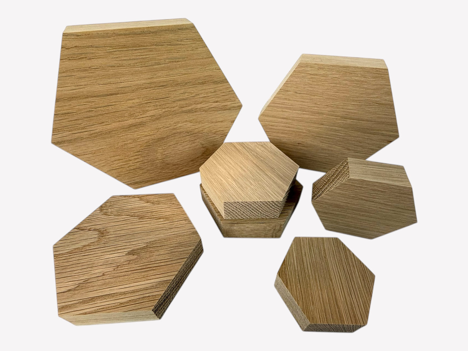 Oak Blanks, solid oak hexagon blocks, for crafting and DIY projects