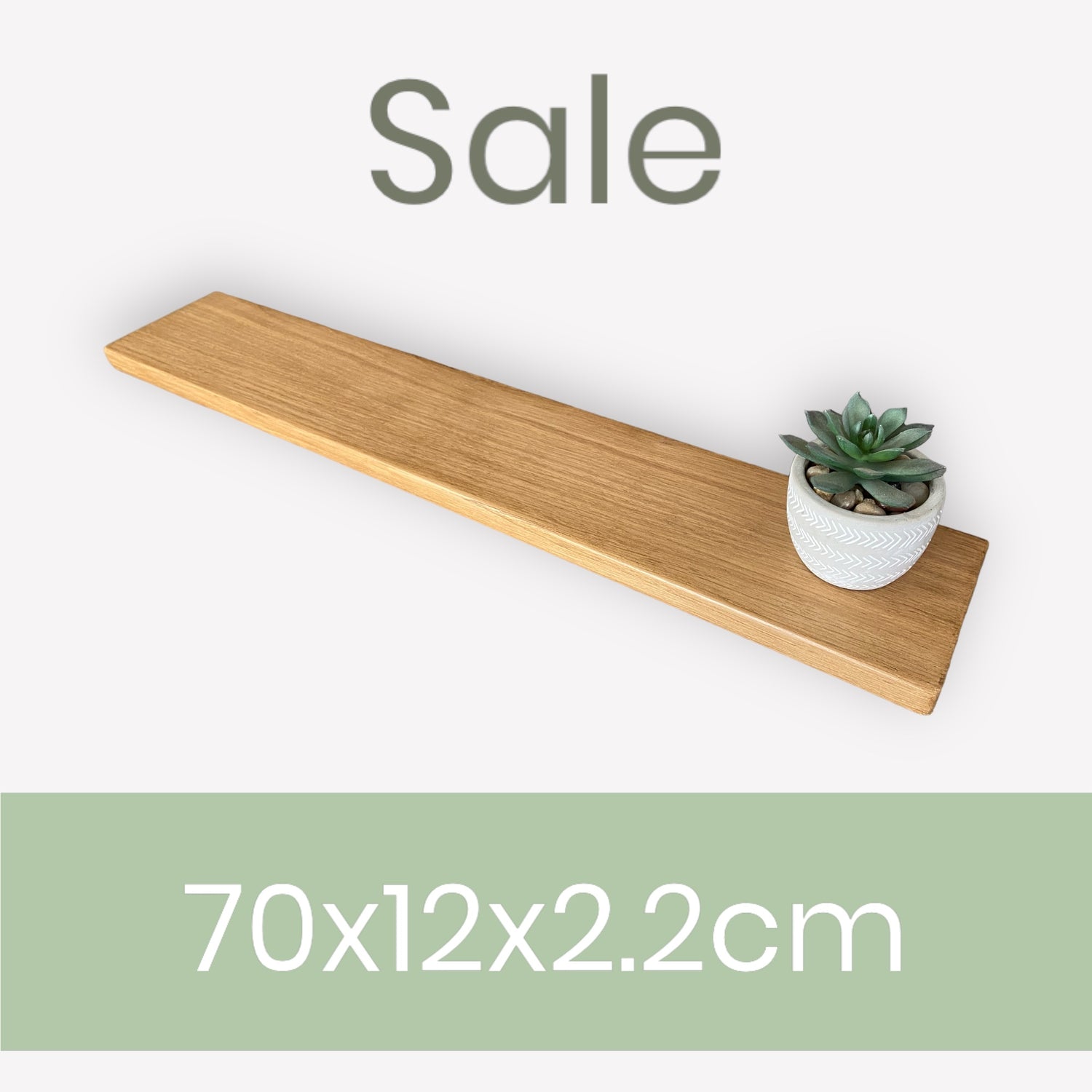 Oak Floating Shelf - 70cm in length x 12cm Deep x slim 2.2cm Thick - Stripped pine - For masonry walls