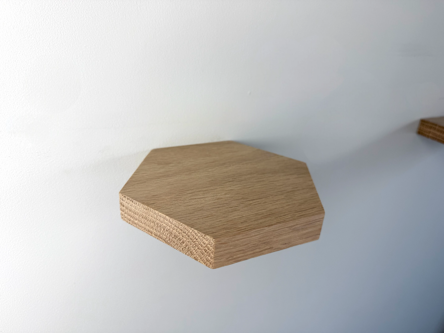 Oak Floating Shelf - Hexagon 15cm Deep x Slim 2.2cm Thick