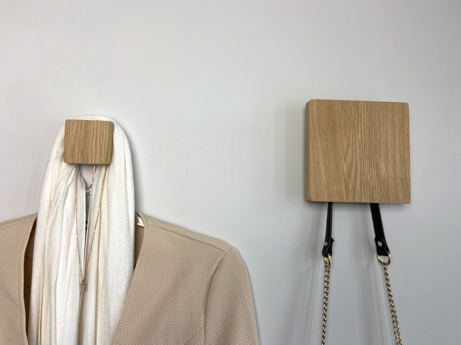 Pack of 3 Square oak hooks / Circle coat pegs / Decorative wall hanger