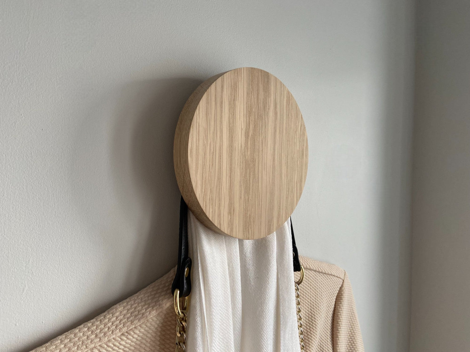 Pack of 5 Round oak hooks / Circle coat pegs / Decorative wall hanger