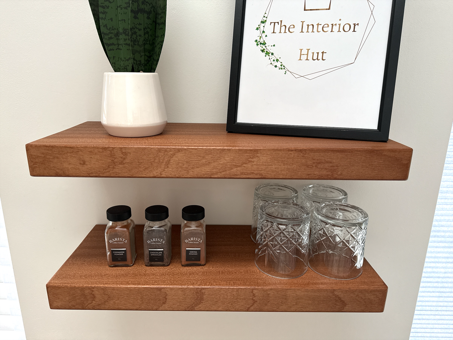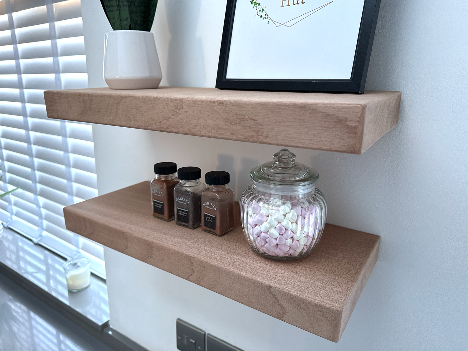 - 20cm deep floating shelf
