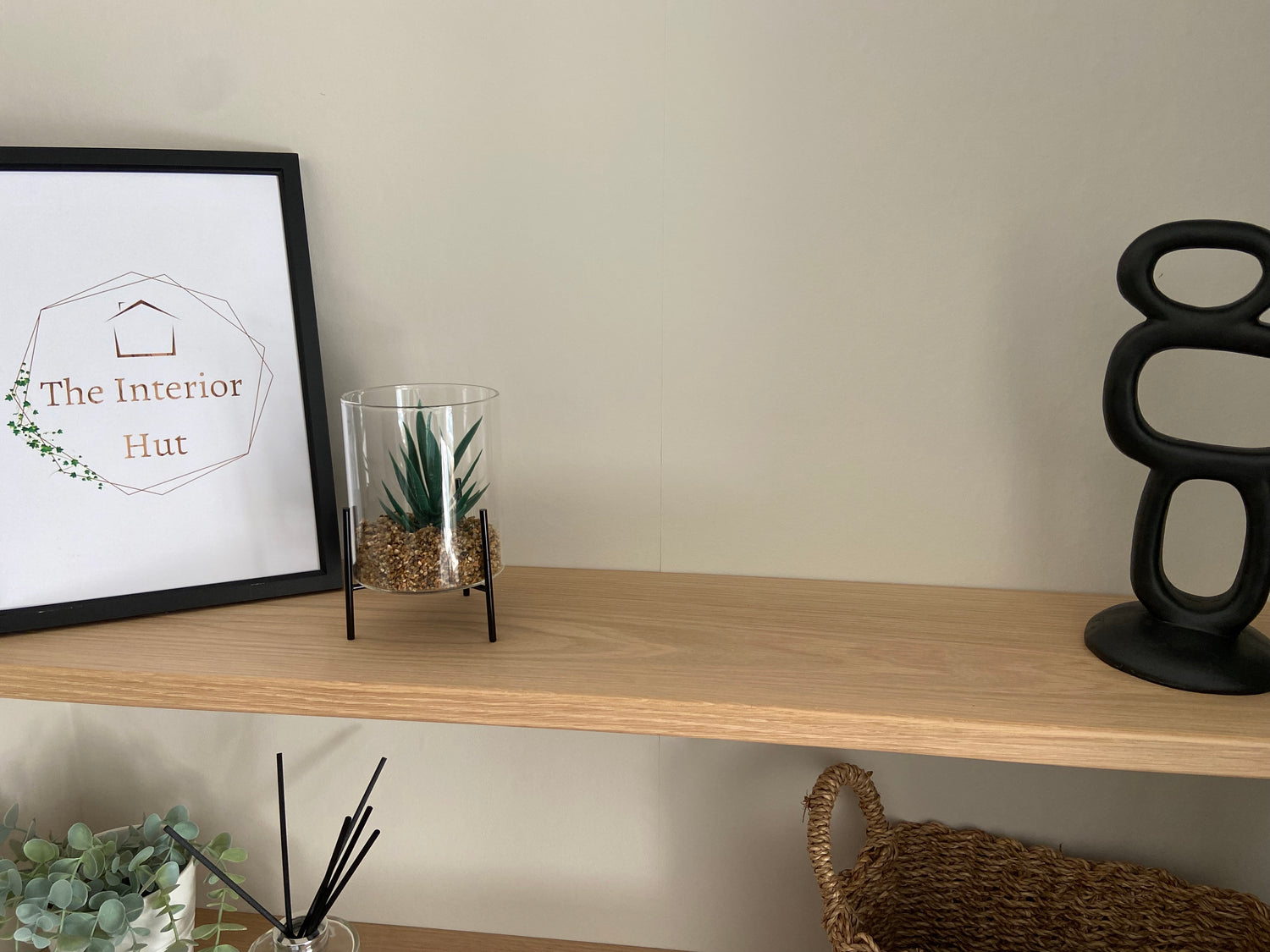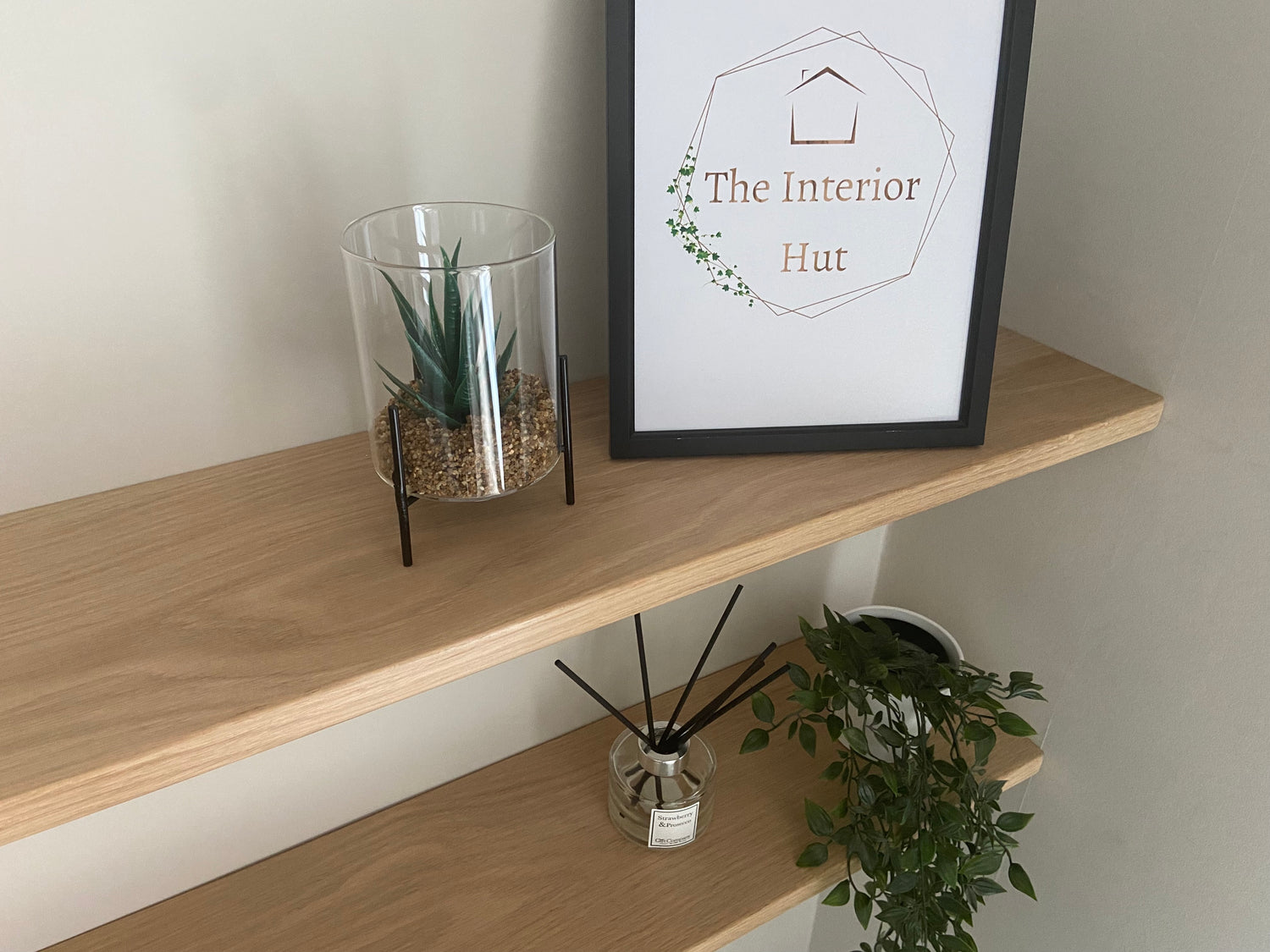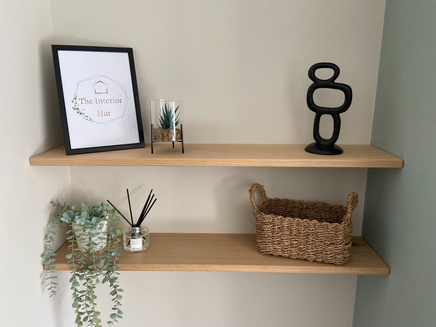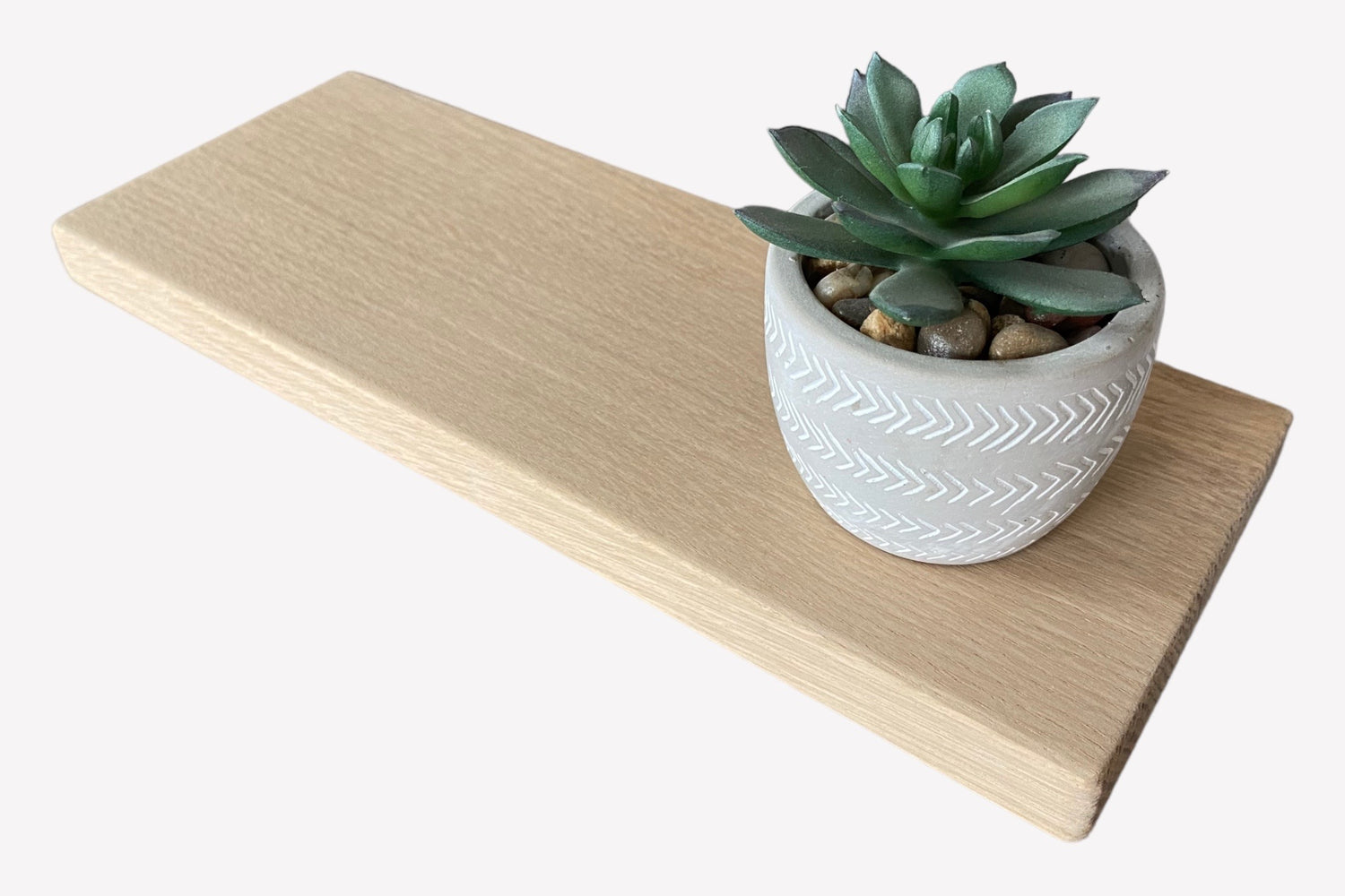 - Solid 20mm (approx) thick slim Oak floating shelf