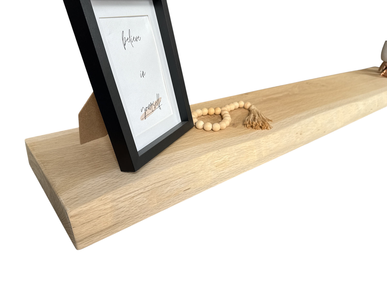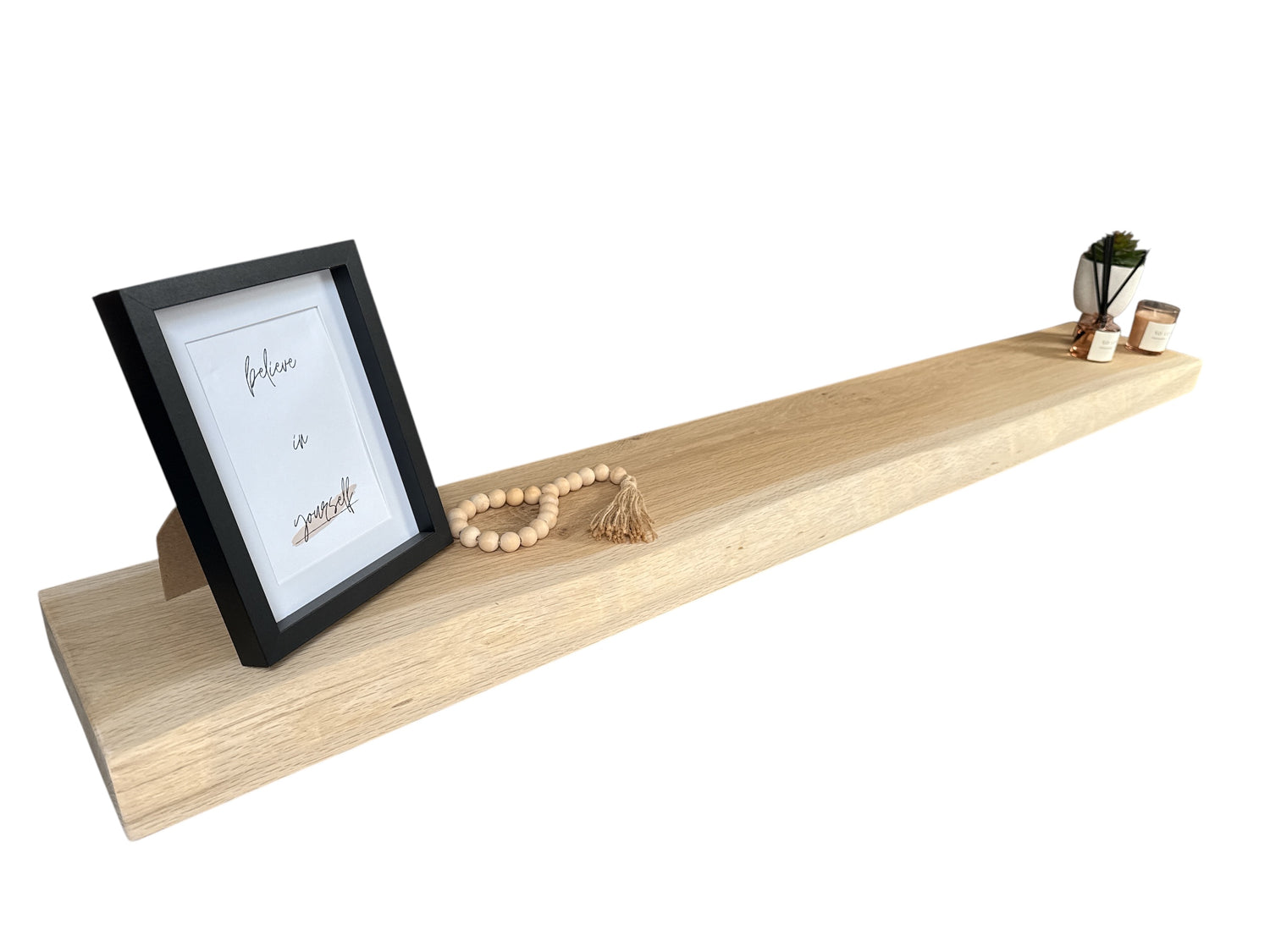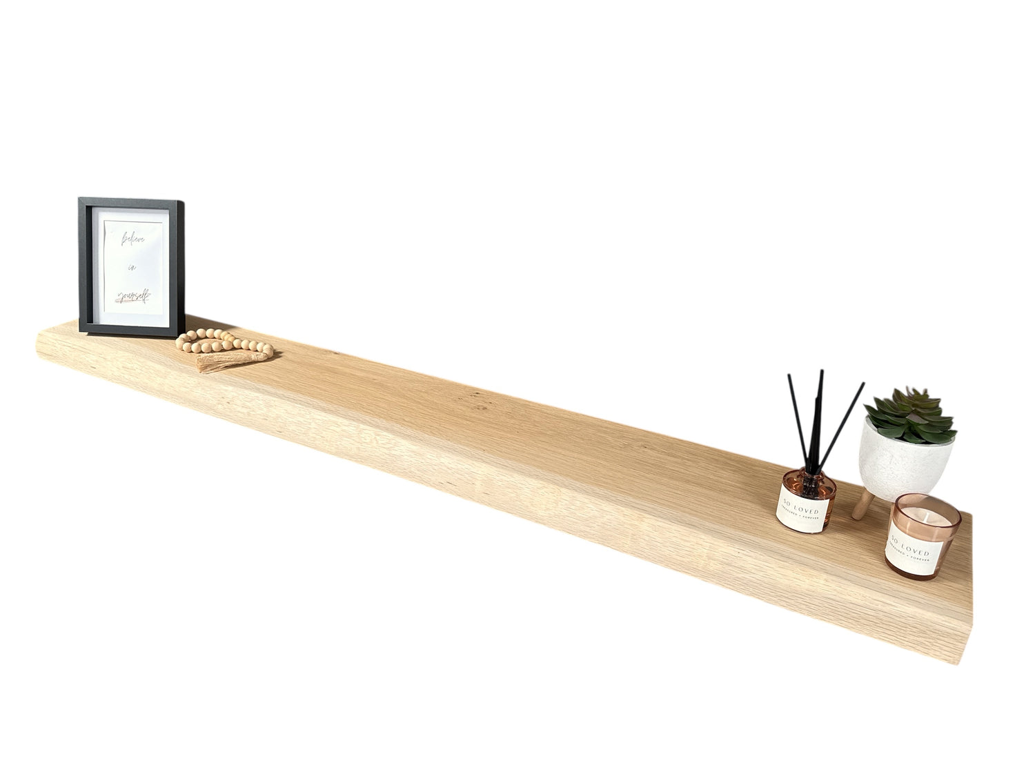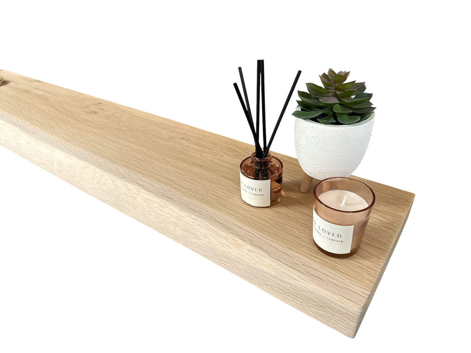 Solid Oak Floating Shelf With a Live / Waney Edge - Chunky 140 x 20cm Deep x 5cm Thick (8"x2") for masonry walls