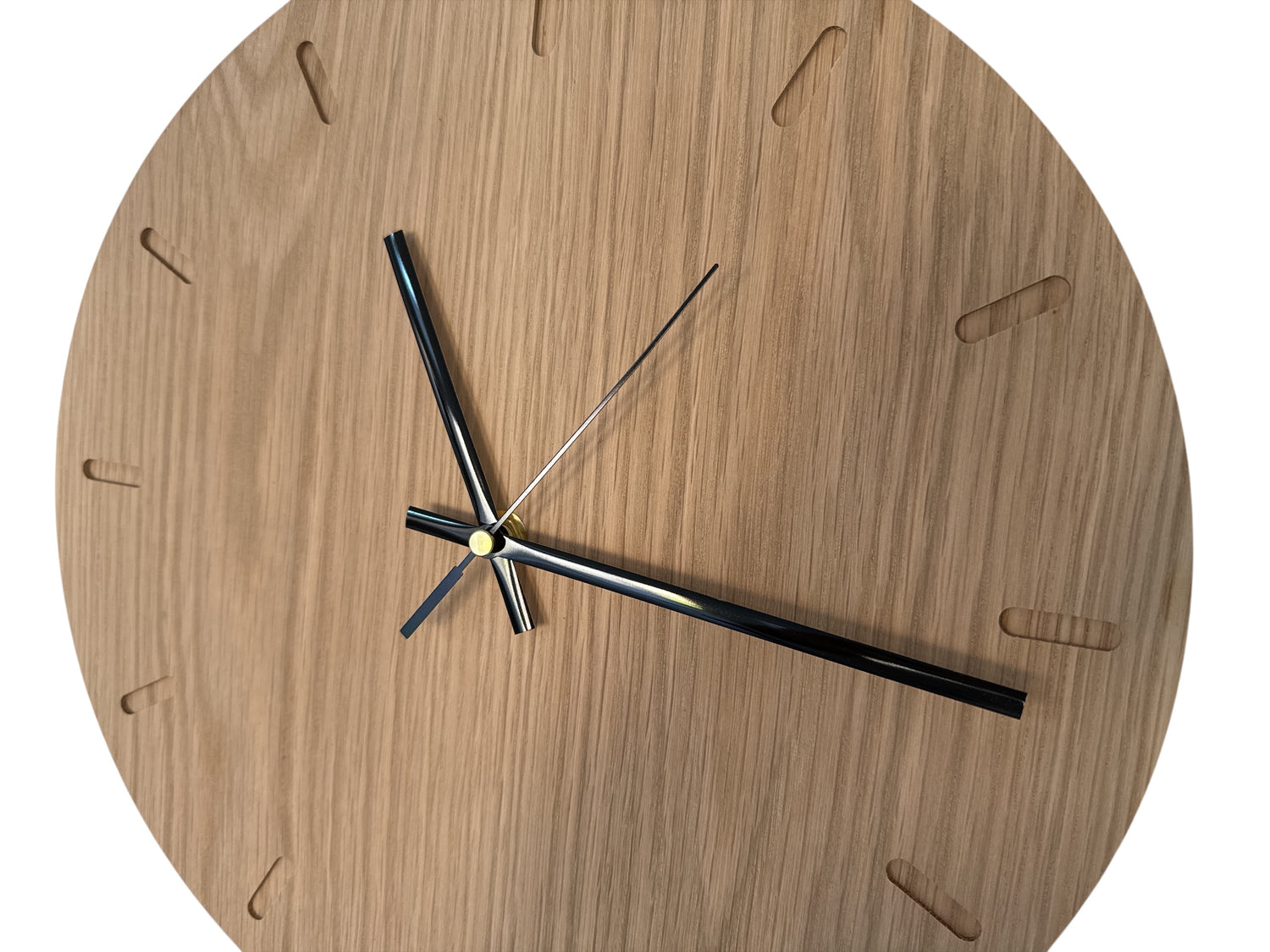 Oak Clock crafted from premium solid oak, this beautifully handmade wall clock brings warmth and sophistication to any space. Designed with a silent quartz movement, it ensures a peaceful environment—no ticking, just timeless elegance.