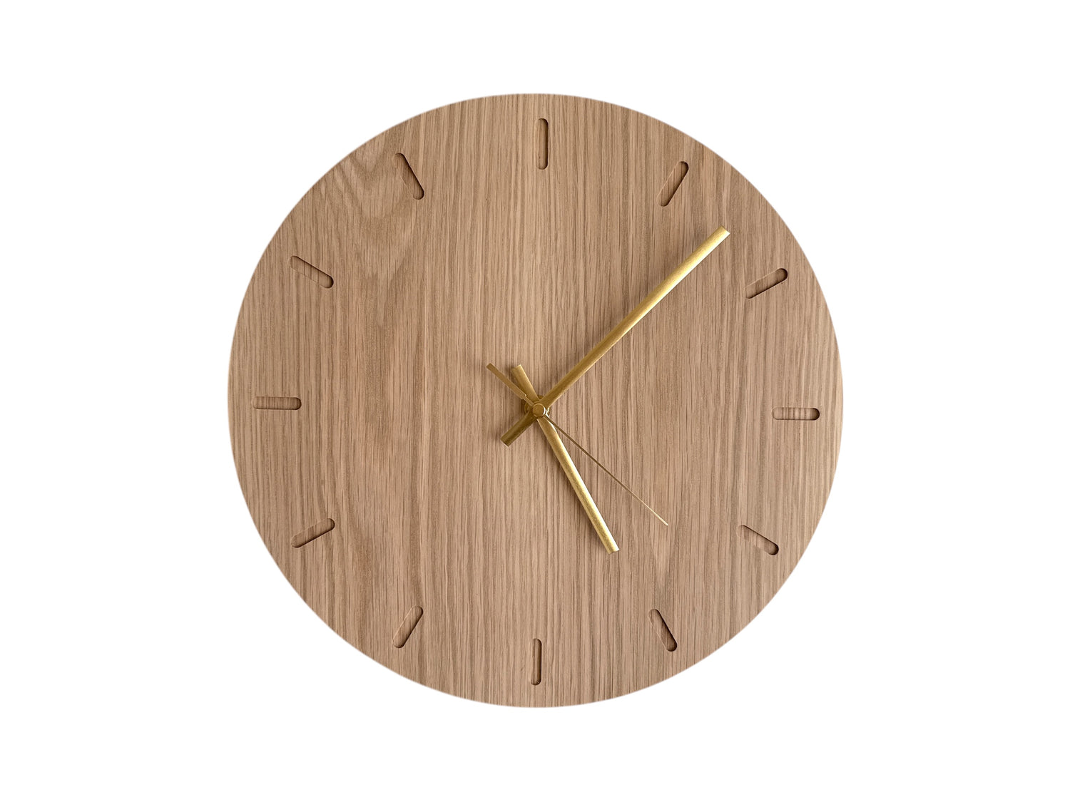 Oak Wall Clock – Solid Wood, Round, Silent Sweep Movement - 32cm